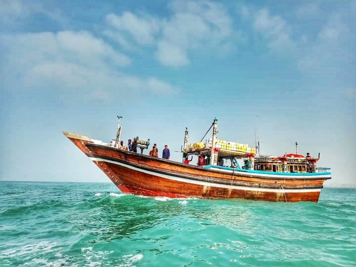 لنج صیادی در آبهای دریای عمان | جلوهای از زندگی دریایی در بندر بریس